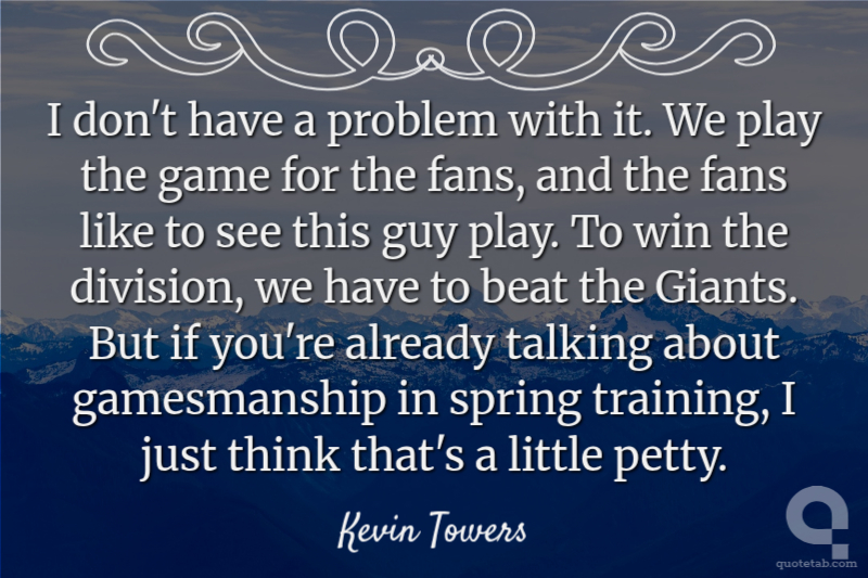 I don't have a problem with it. We play the game for the fans, and the fans like to see this guy play. To win the division, we have to beat the Giants. But if you're already talking about gamesmanship in spring training, I just think that's a little petty.