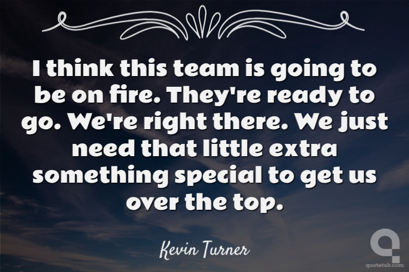 I think this team is going to be on fire. They're ready to go. We're right there. We just need that little extra something special to get us over the top.