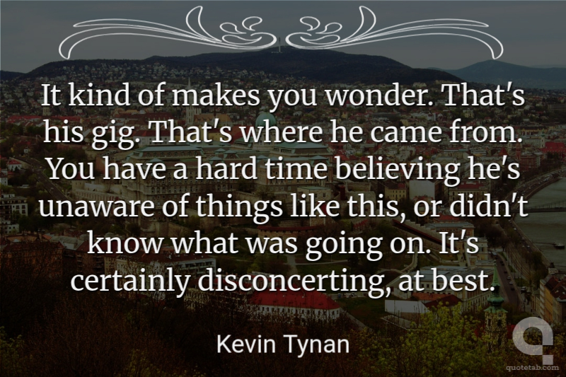 It kind of makes you wonder. That's his gig. That's where he came from. You have a hard time believing he's unaware of things like this, or didn't know what was going on. It's certainly disconcerting, at best.