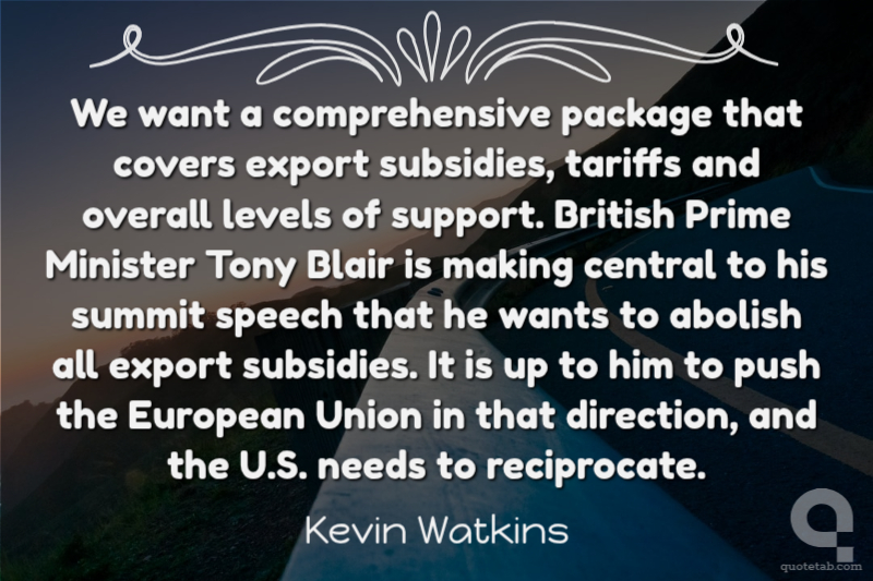 We want a comprehensive package that covers export subsidies, tariffs and overall levels of support. British Prime Minister Tony Blair is making central to his summit speech that he wants to abolish all export subsidies. It is up to him to push the European Union in that direction, and the U.S. needs to reciprocate.