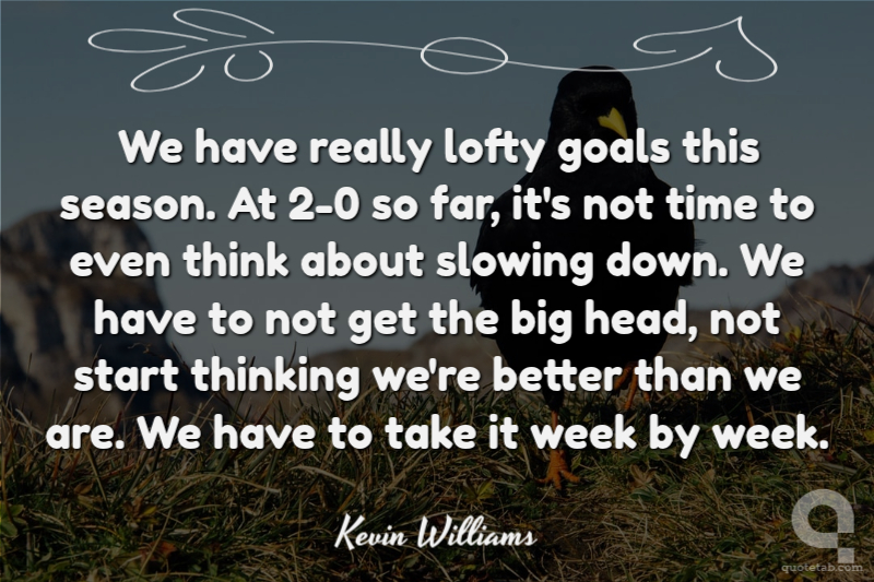 We have really lofty goals this season. At 2-0 so far, it's not time to even think about slowing down. We have to not get the big head, not start thinking we're better than we are. We have to take it week by week.