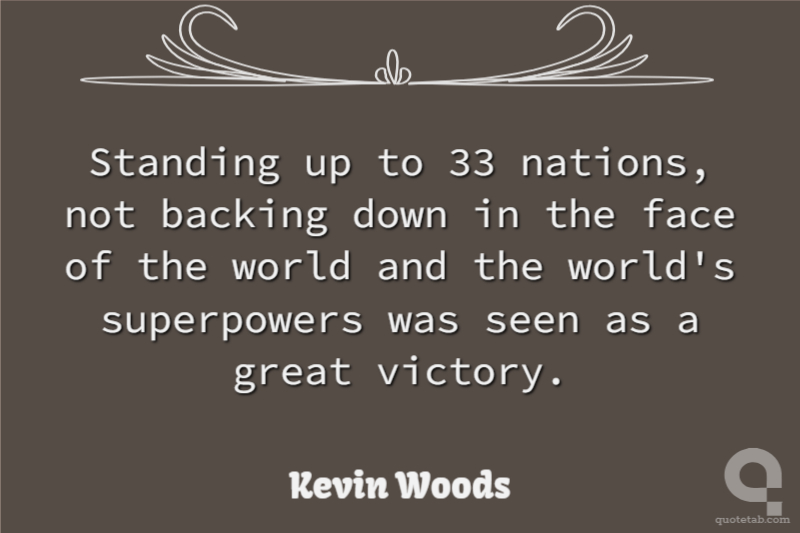 Standing up to 33 nations, not backing down in the face of the world and the world's superpowers was seen as a great victory.