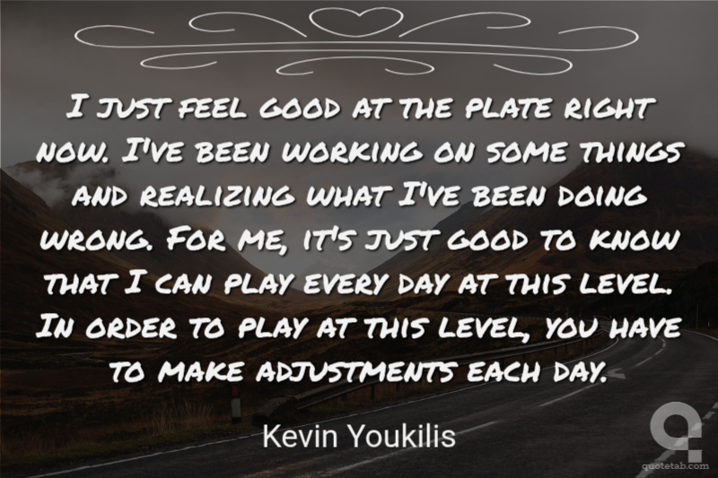 I just feel good at the plate right now. I've been working on some things and realizing what I've been doing wrong. For me, it's just good to know that I can play every day at this level. In order to play at this level, you have to make adjustments each day.