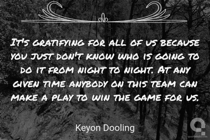 It's gratifying for all of us because you just don't know who is going to do it from night to night. At any given time anybody on this team can make a play to win the game for us.