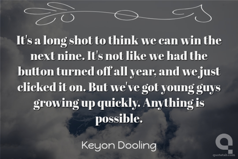 It's a long shot to think we can win the next nine. It's not like we had the button turned off all year, and we just clicked it on. But we've got young guys growing up quickly. Anything is possible.