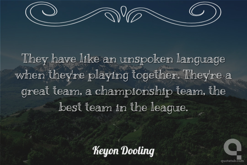They have like an unspoken language when they're playing together. They're a great team, a championship team, the best team in the league.