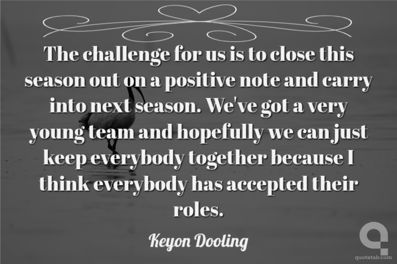 The challenge for us is to close this season out on a positive note and carry into next season. We've got a very young team and hopefully we can just keep everybody together because I think everybody has accepted their roles.