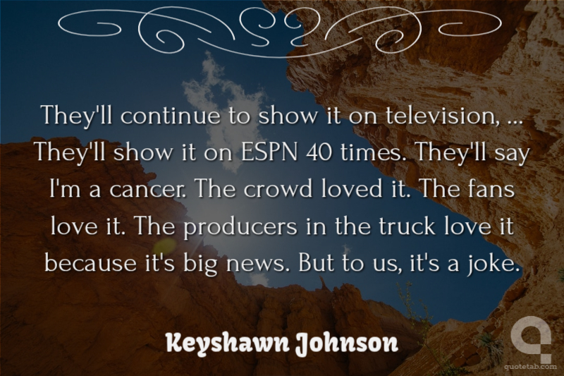They'll continue to show it on television, ... They'll show it on ESPN 40 times. They'll say I'm a cancer. The crowd loved it. The fans love it. The producers in the truck love it because it's big news. But to us, it's a joke.