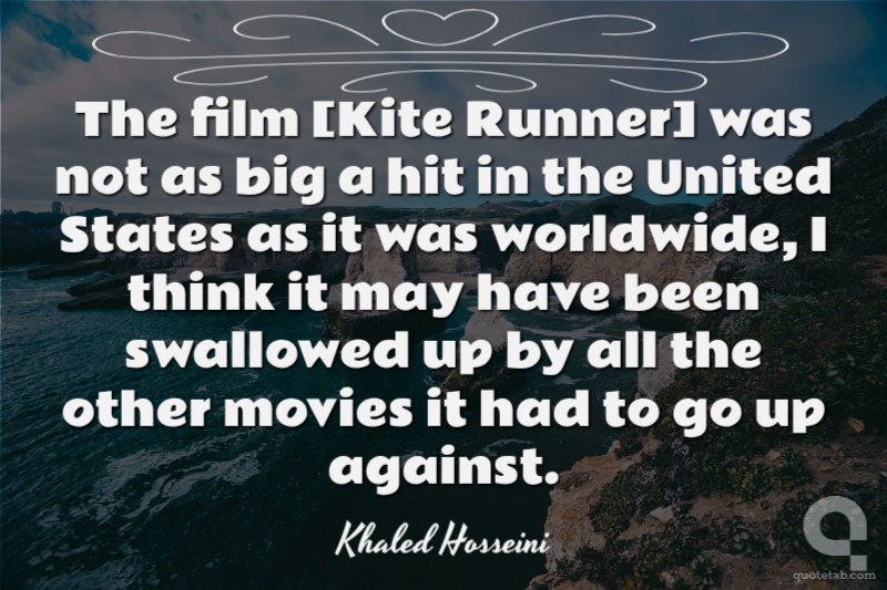 The film [Kite Runner] was not as big a hit in the United States as it was worldwide, I think it may have been swallowed up by all the other movies it had to go up against.