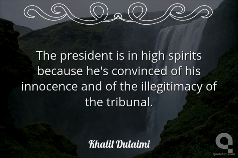 The president is in high spirits because he's convinced of his innocence and of the illegitimacy of the tribunal.