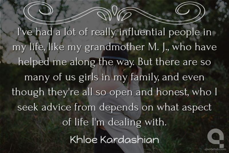 I've had a lot of really influential people in my life, like my grandmother M. J., who have helped me along the way. But there are so many of us girls in my family, and even though they're all so open and honest, who I seek advice from depends on what aspect of life I'm dealing with.