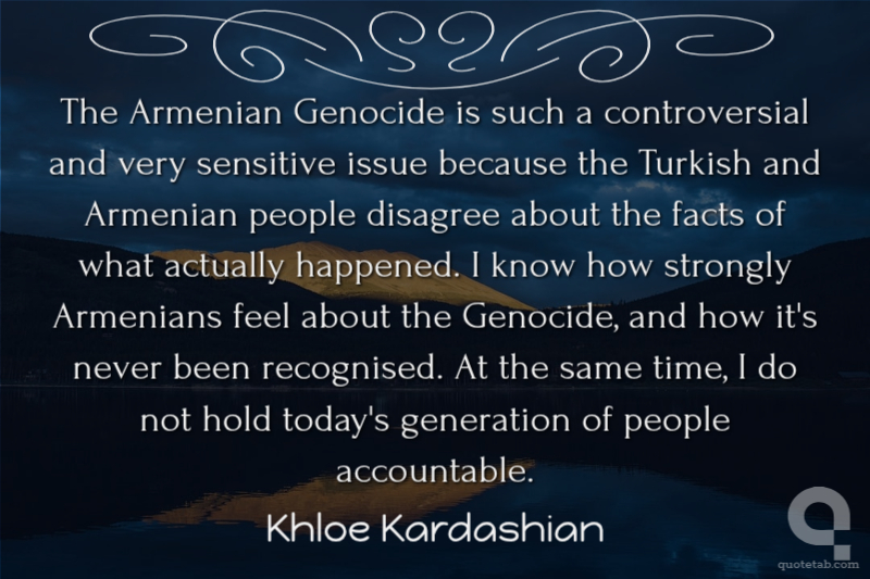 The Armenian Genocide is such a controversial and very sensitive issue because the Turkish and Armenian people disagree about the facts of what actually happened. I know how strongly Armenians feel about the Genocide, and how it's never been recognised. At the same time, I do not hold today's generation of people accountable.