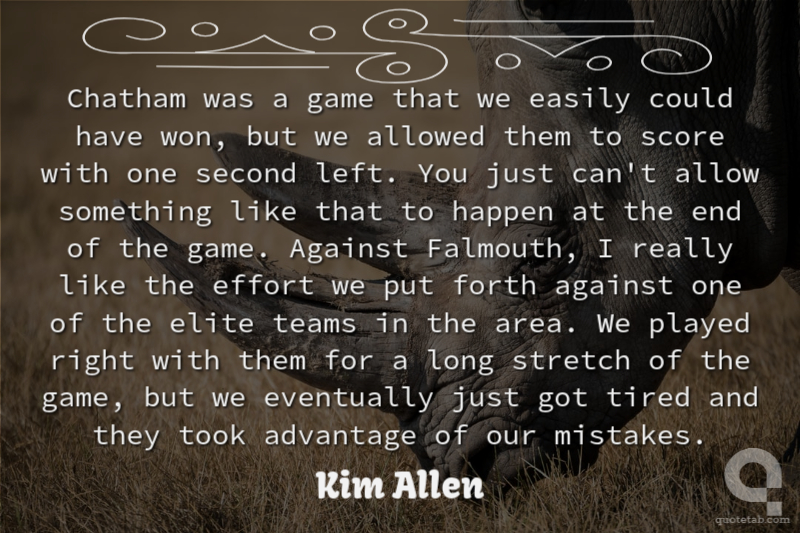 Chatham was a game that we easily could have won, but we allowed them to score with one second left. You just can't allow something like that to happen at the end of the game. Against Falmouth, I really like the effort we put forth against one of the elite teams in the area. We played right with them for a long stretch of the game, but we eventually just got tired and they took advantage of our mistakes.