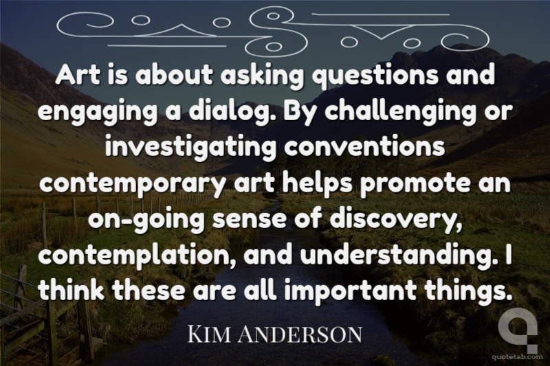 Art is about asking questions and engaging a dialog. By challenging or investigating conventions contemporary art helps promote an on-going sense of discovery, contemplation, and understanding. I think these are all important things.
