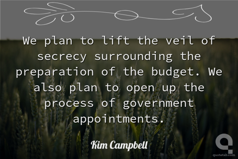 We plan to lift the veil of secrecy surrounding the preparation of the budget. We also plan to open up the process of government appointments.