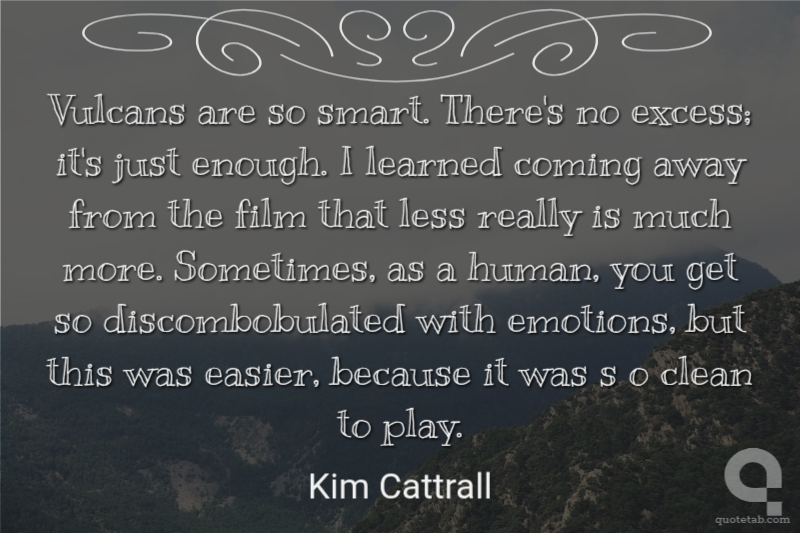 Vulcans are so smart. There's no excess; it's just enough. I learned coming away from the film that less really is much more. Sometimes, as a human, you get so discombobulated with emotions, but this was easier, because it was s o clean to play.