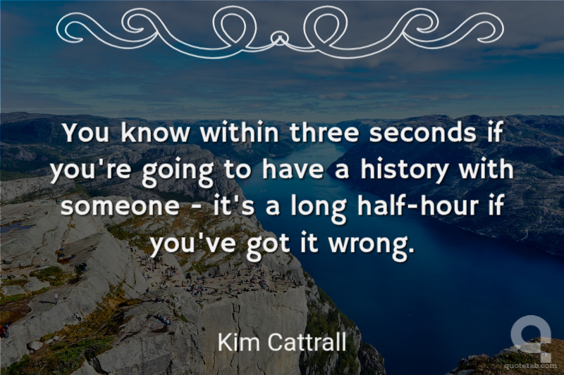 You know within three seconds if you're going to have a history with someone - it's a long half-hour if you've got it wrong.