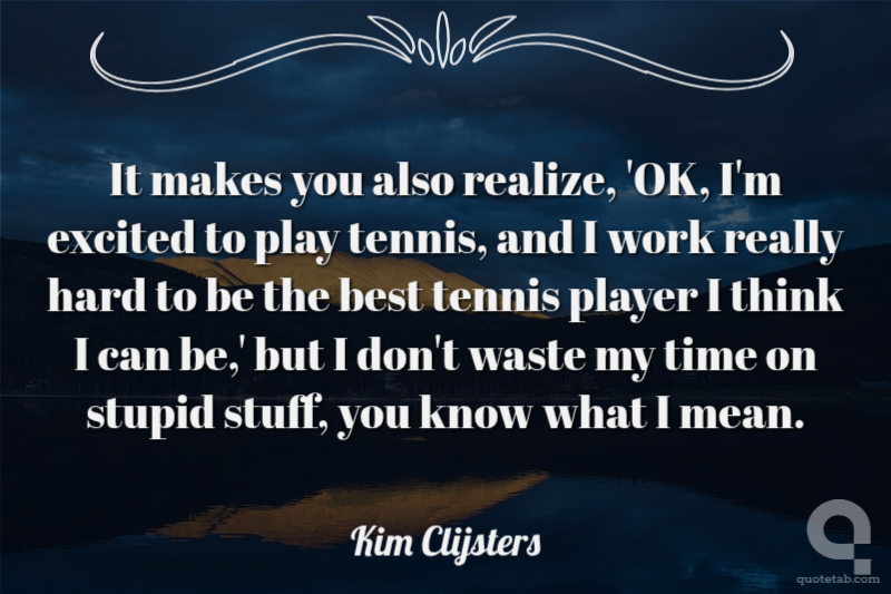 It makes you also realize, 'OK, I'm excited to play tennis, and I work really hard to be the best tennis player I think I can be,' but I don't waste my time on stupid stuff, you know what I mean.