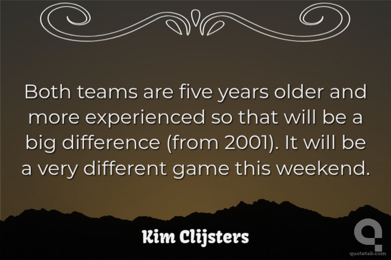 Both teams are five years older and more experienced so that will be a big difference (from 2001). It will be a very different game this weekend.