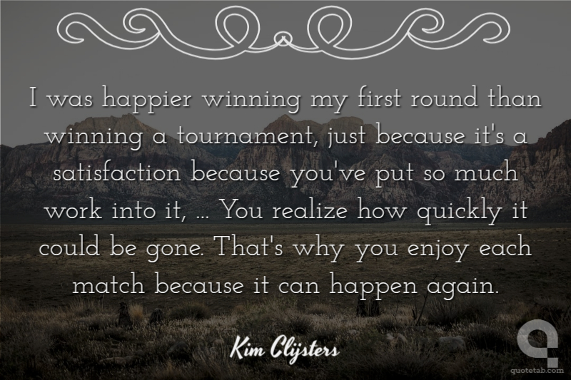 I was happier winning my first round than winning a tournament, just because it's a satisfaction because you've put so much work into it, ... You realize how quickly it could be gone. That's why you enjoy each match because it can happen again.