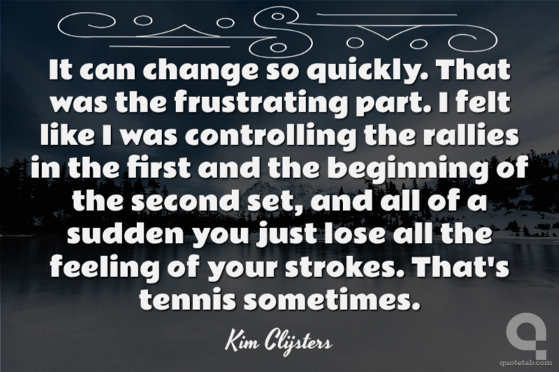 It can change so quickly. That was the frustrating part. I felt like I was controlling the rallies in the first and the beginning of the second set, and all of a sudden you just lose all the feeling of your strokes. That's tennis sometimes.