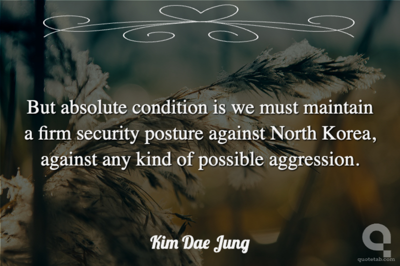 But absolute condition is we must maintain a firm security posture against North Korea, against any kind of possible aggression.