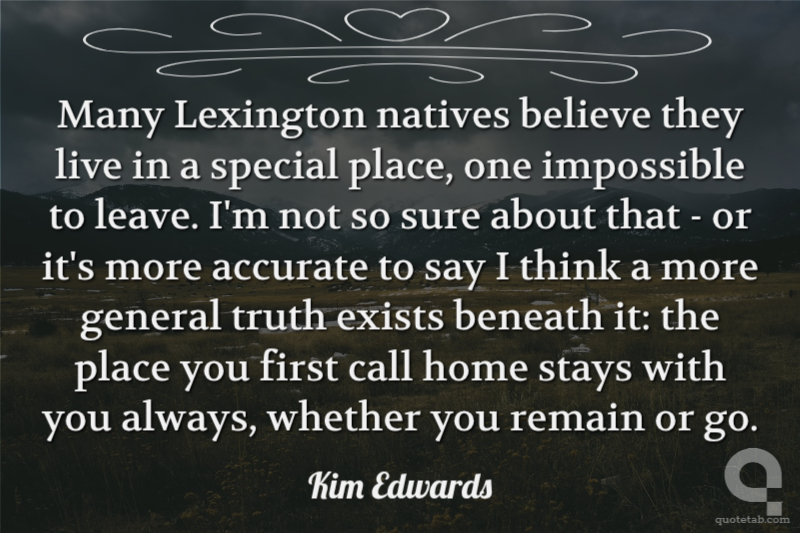 Many Lexington natives believe they live in a special place, one impossible to leave. I'm not so sure about that - or it's more accurate to say I think a more general truth exists beneath it: the place you first call home stays with you always, whether you remain or go.