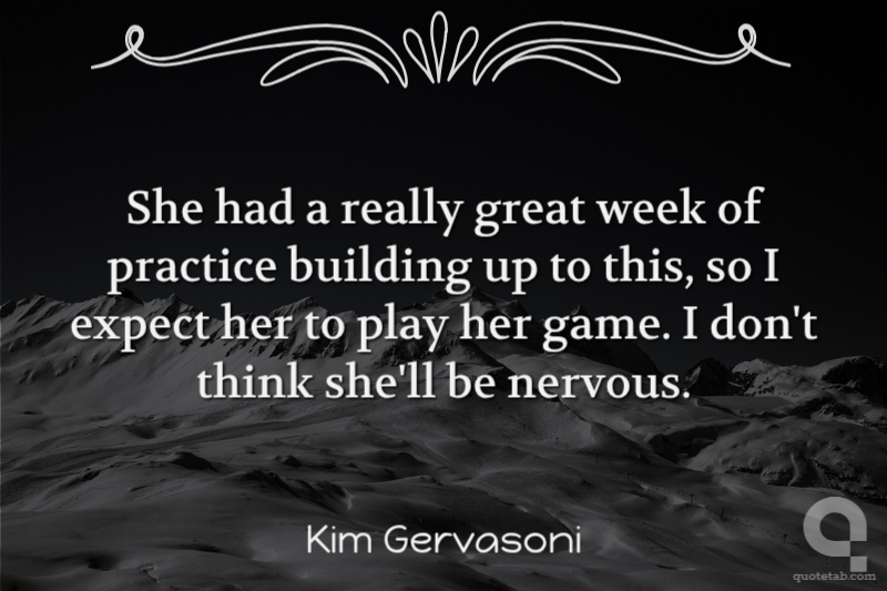 She had a really great week of practice building up to this, so I expect her to play her game. I don't think she'll be nervous.