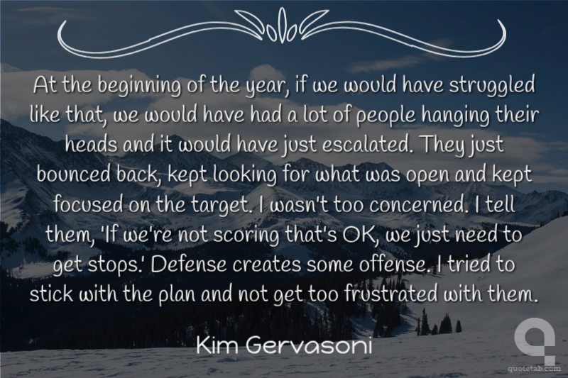 At the beginning of the year, if we would have struggled like that, we would have had a lot of people hanging their heads and it would have just escalated. They just bounced back, kept looking for what was open and kept focused on the target. I wasn't too concerned. I tell them, 'If we're not scoring that's OK, we just need to get stops.' Defense creates some offense. I tried to stick with the plan and not get too frustrated with them.