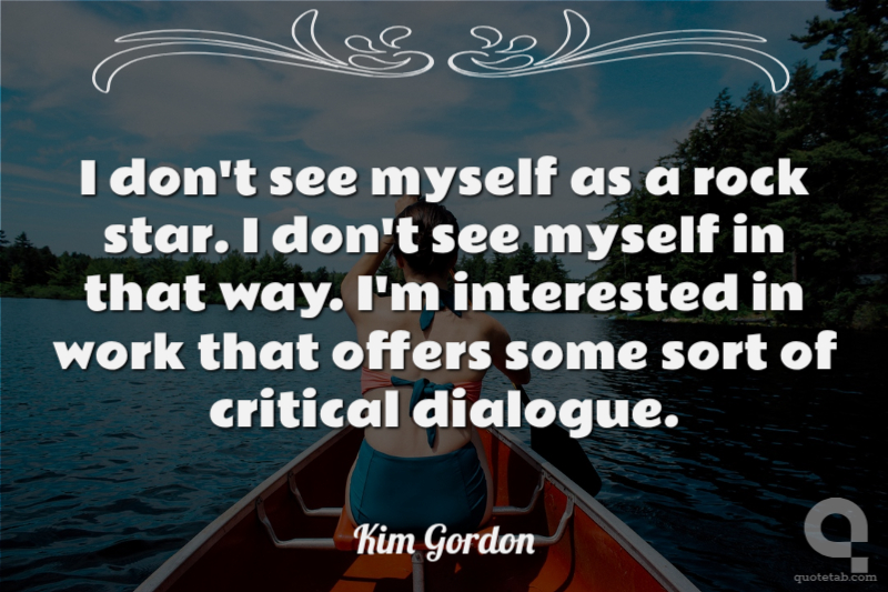 I don't see myself as a rock star. I don't see myself in that way. I'm interested in work that offers some sort of critical dialogue.