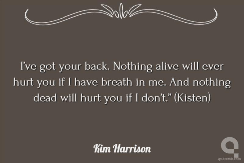 I’ve got your back. Nothing alive will ever hurt you if I have breath in me. And nothing dead will hurt you if I don’t.” (Kisten)