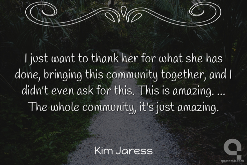 I just want to thank her for what she has done, bringing this community together, and I didn't even ask for this. This is amazing. ... The whole community, it's just amazing.