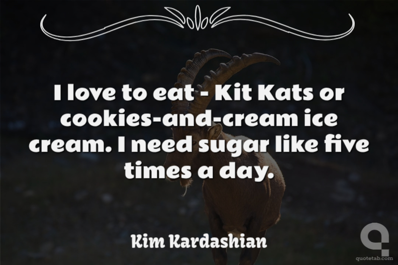 I love to eat - Kit Kats or cookies-and-cream ice cream. I need sugar like five times a day.