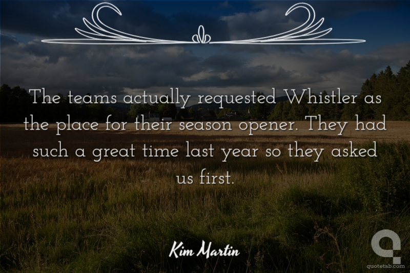 The teams actually requested Whistler as the place for their season opener. They had such a great time last year so they asked us first.