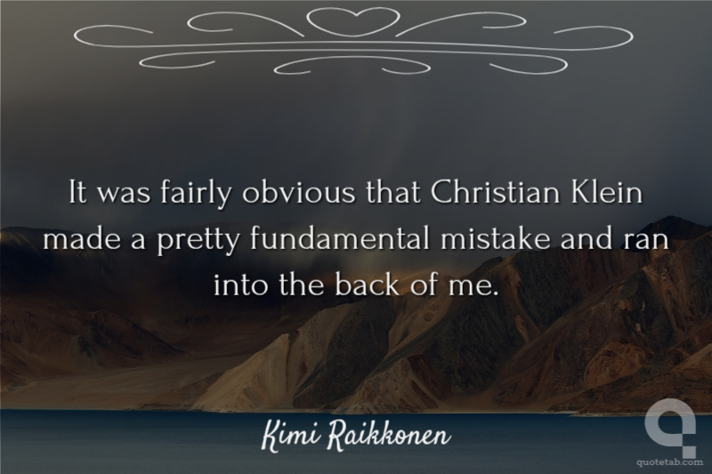 It was fairly obvious that Christian Klein made a pretty fundamental mistake and ran into the back of me.