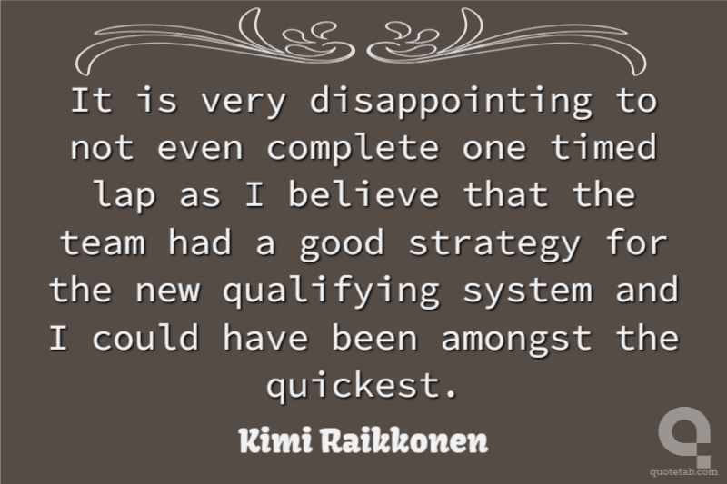 It is very disappointing to not even complete one timed lap as I believe that the team had a good strategy for the new qualifying system and I could have been amongst the quickest.