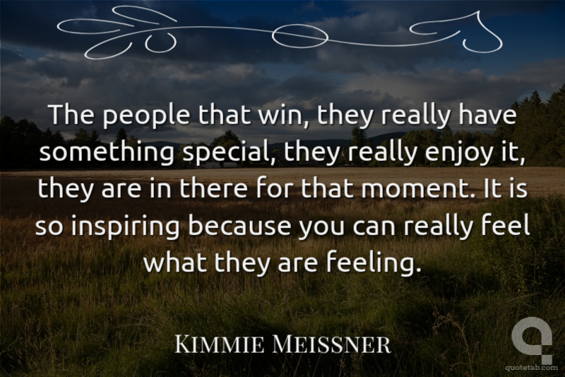 The people that win, they really have something special, they really enjoy it, they are in there for that moment. It is so inspiring because you can really feel what they are feeling.