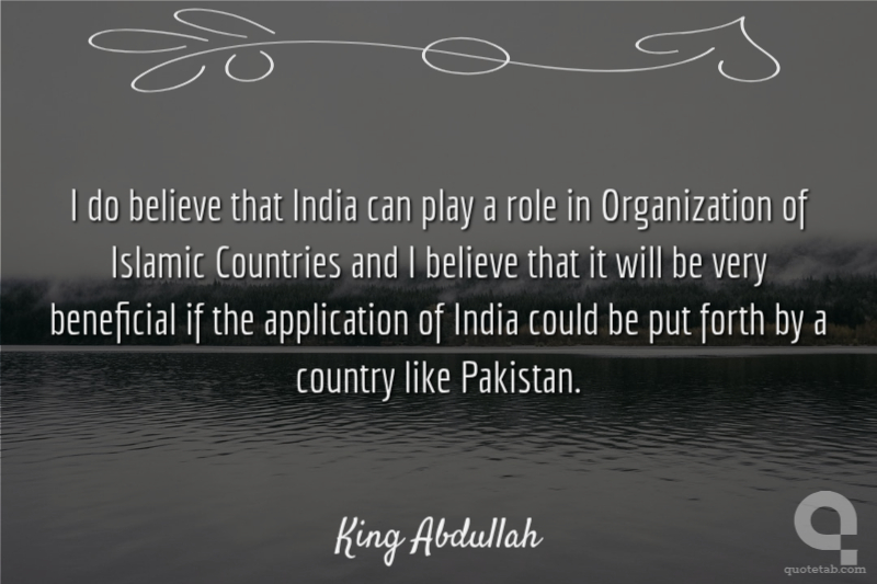 I do believe that India can play a role in Organization of Islamic Countries and I believe that it will be very beneficial if the application of India could be put forth by a country like Pakistan.