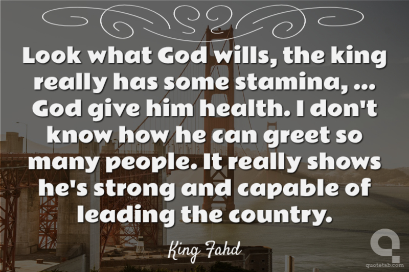 Look what God wills, the king really has some stamina, ... God give him health. I don't know how he can greet so many people. It really shows he's strong and capable of leading the country.