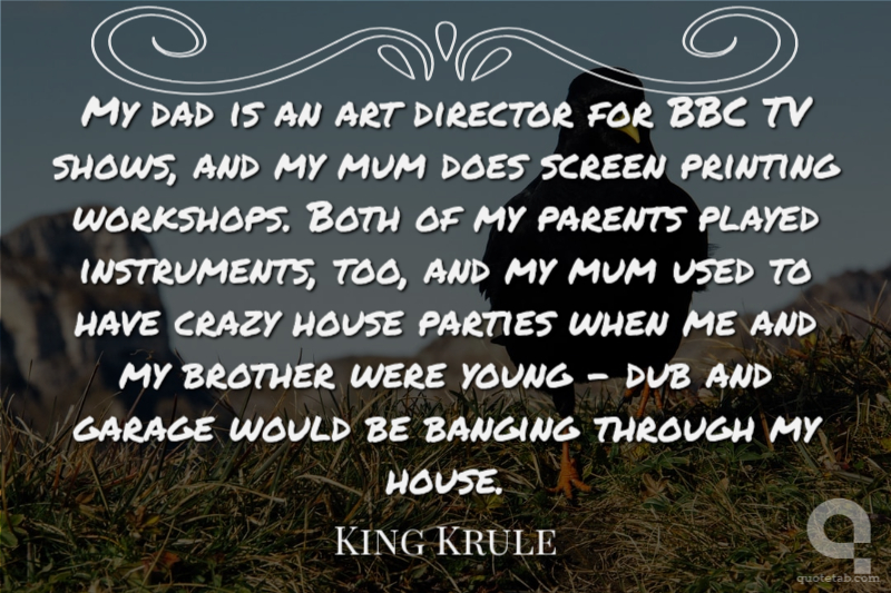 My dad is an art director for BBC TV shows, and my mum does screen printing workshops. Both of my parents played instruments, too, and my mum used to have crazy house parties when me and my brother were young - dub and garage would be banging through my house.