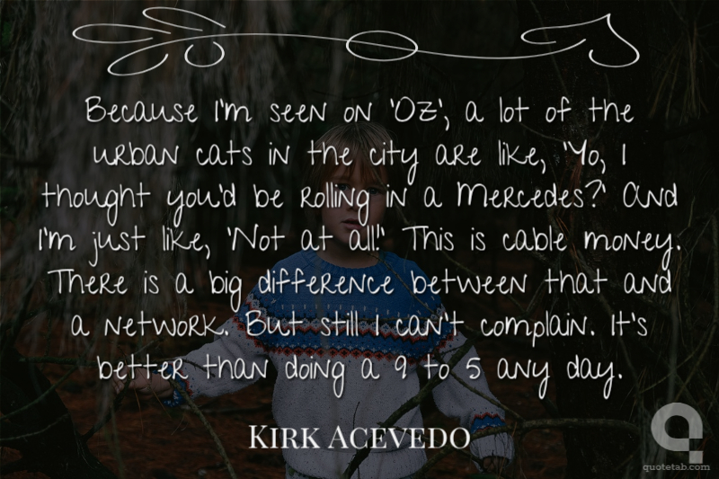 Because I'm seen on 'Oz', a lot of the urban cats in the city are like, 'Yo, I thought you'd be rolling in a Mercedes?' And I'm just like, 'Not at all!' This is cable money. There is a big difference between that and a network. But still I can't complain. It's better than doing a 9 to 5 any day.