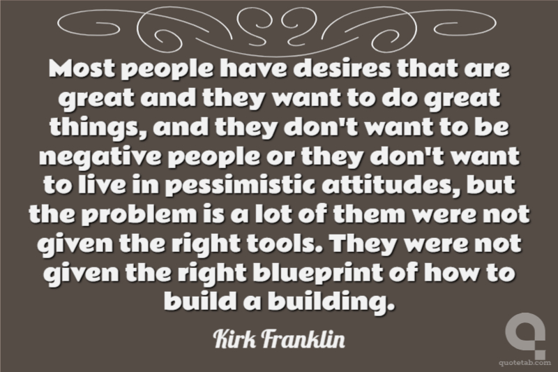 Most people have desires that are great and they want to do great things, and they don't want to be negative people or they don't want to live in pessimistic attitudes, but the problem is a lot of them were not given the right tools. They were not given the right blueprint of how to build a building.