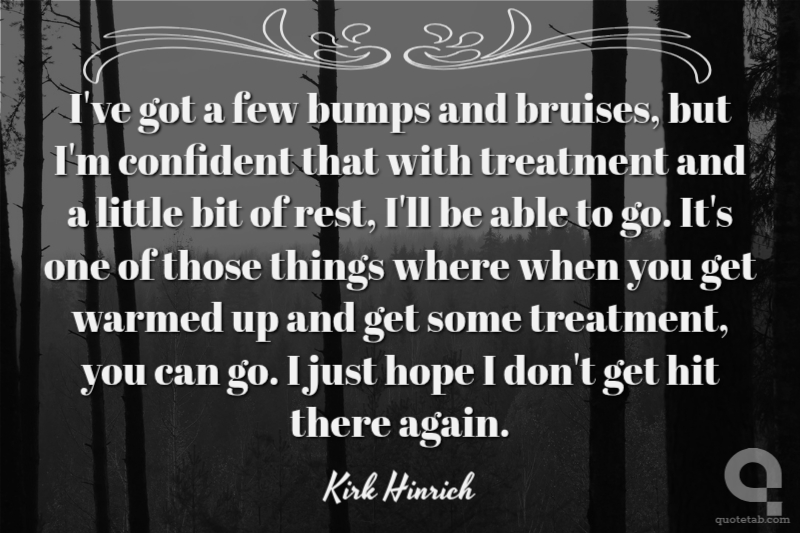 I've got a few bumps and bruises, but I'm confident that with treatment and a little bit of rest, I'll be able to go. It's one of those things where when you get warmed up and get some treatment, you can go. I just hope I don't get hit there again.