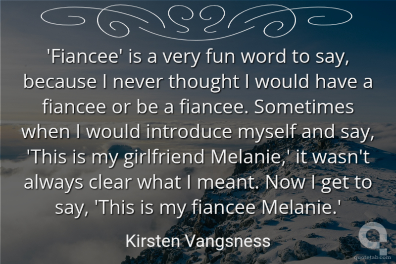 'Fiancee' is a very fun word to say, because I never thought I would have a fiancee or be a fiancee. Sometimes when I would introduce myself and say, 'This is my girlfriend Melanie,' it wasn't always clear what I meant. Now I get to say, 'This is my fiancee Melanie.'