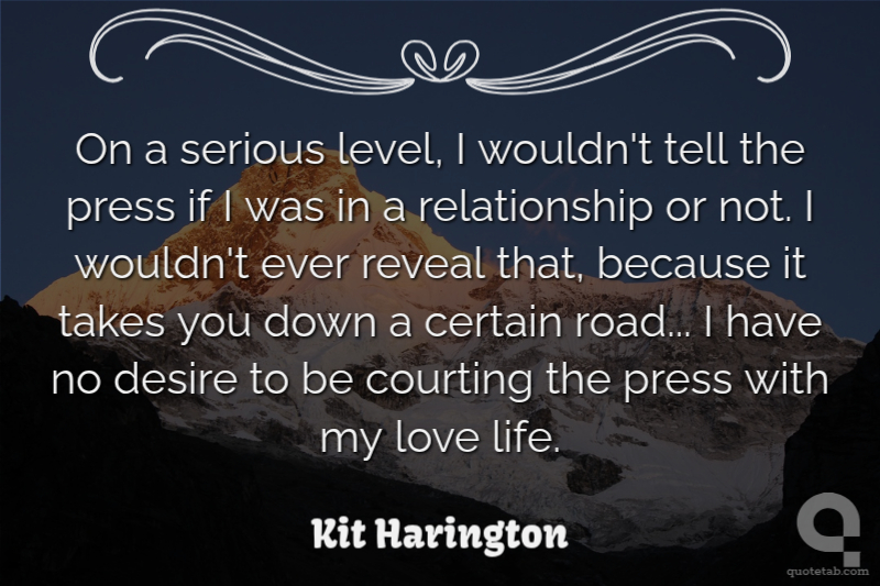 On a serious level, I wouldn't tell the press if I was in a relationship or not. I wouldn't ever reveal that, because it takes you down a certain road... I have no desire to be courting the press with my love life.