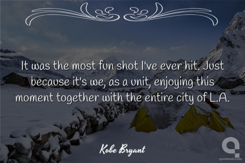 It was the most fun shot I've ever hit. Just because it's we, as a unit, enjoying this moment together with the entire city of L.A.