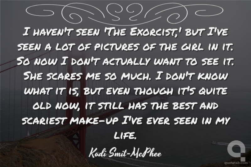 I haven't seen 'The Exorcist,' but I've seen a lot of pictures of the girl in it. So now I don't actually want to see it. She scares me so much. I don't know what it is, but even though it's quite old now, it still has the best and scariest make-up I've ever seen in my life.