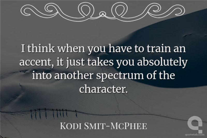I think when you have to train an accent, it just takes you absolutely into another spectrum of the character.