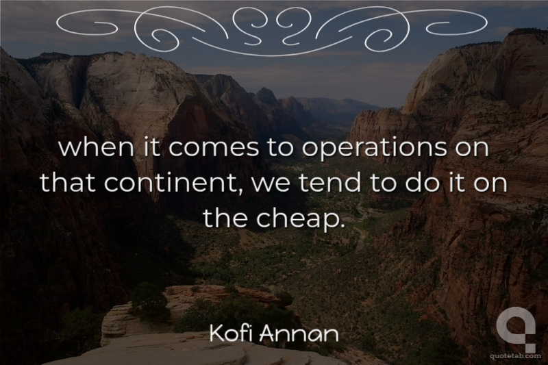 when it comes to operations on that continent, we tend to do it on the cheap.