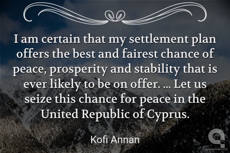 I am certain that my settlement plan offers the best and fairest chance of peace, prosperity and stability that is ever likely to be on offer. ... Let us seize this chance for peace in the United Republic of Cyprus.